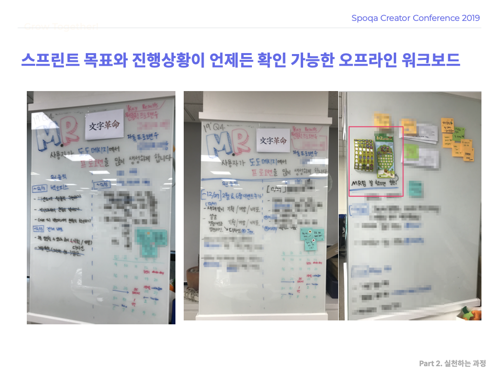 또한 '보드'를 통해서 언제든 진행상황과 스프린트 목표를 파악할 수 있도록 온/오프라인 보드를 활용한 것이 인상적이다.